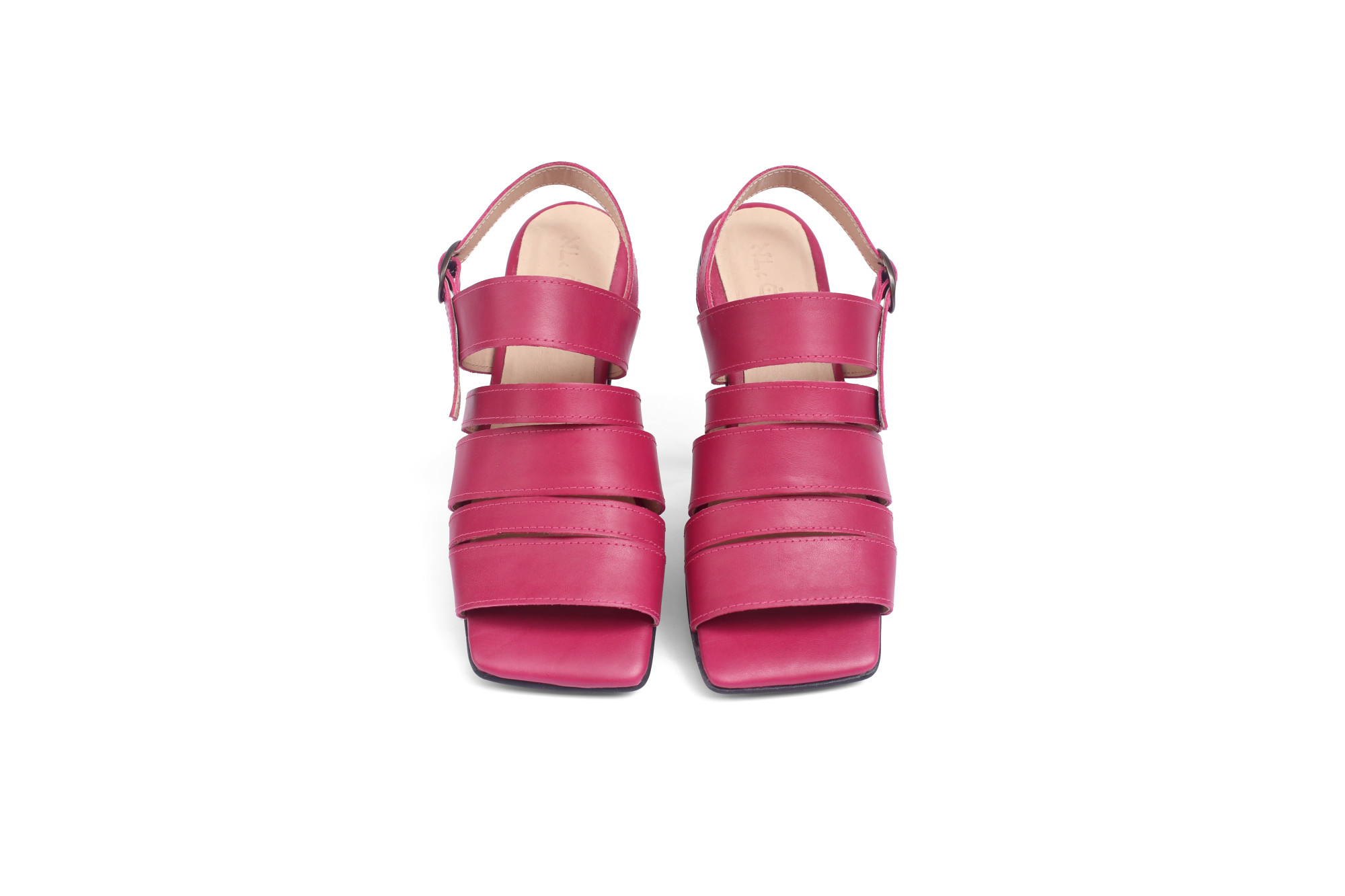 Women’s Fuchsia Leather Strap Sandals – Square Toe 1.5 cm Heel