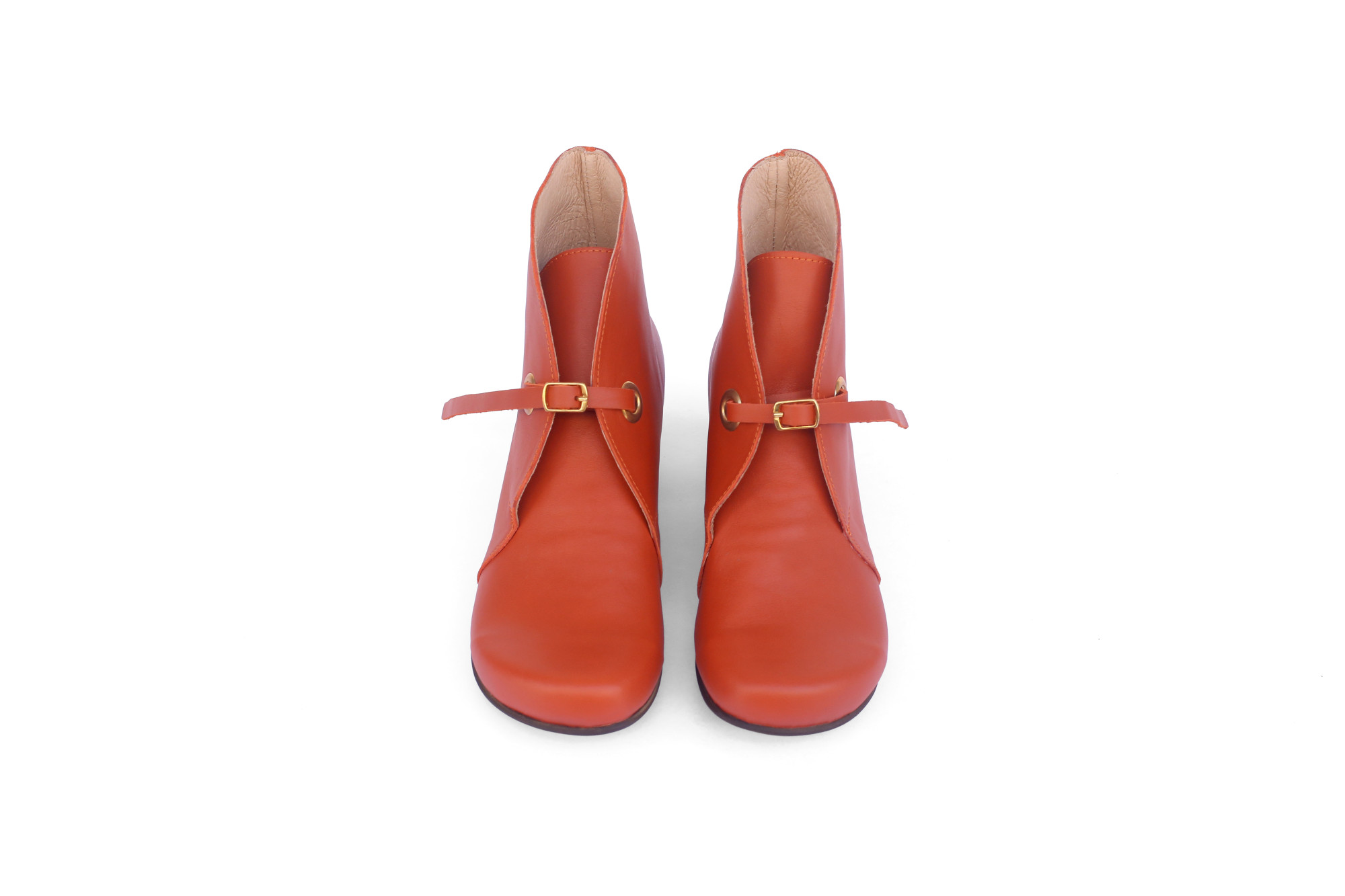 Women’s Leather Ankle Boots with 4 cm Heel – Orange with Adjustable Leather Strap